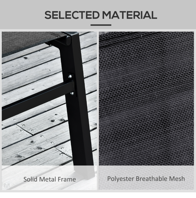Home > Chaise Lounge Chair Black With Wheels Adjustable Backrest Breathable For Sunbathing Patio